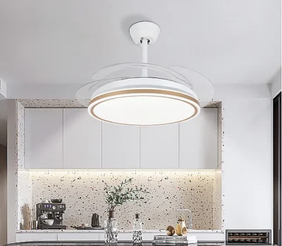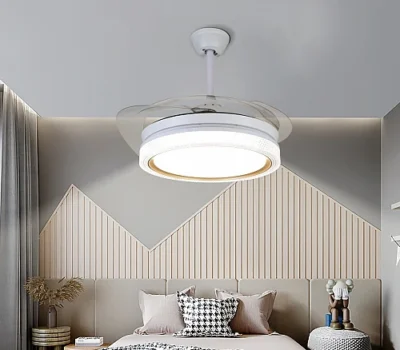 مروحة السقف القابلة للطي شكل ابيض بتصميم فاخر وساحر متعددة الألوان ( كريمي + اصفر + ابيض ) 50 سم