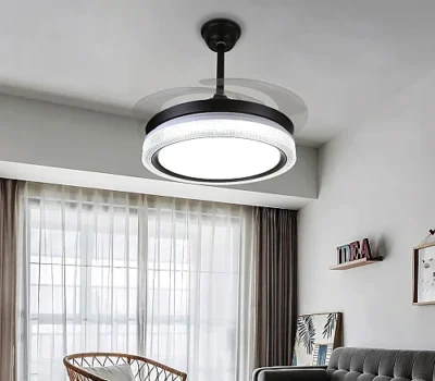 مروحة السقف القابلة للطي اسود لون الانارة 3اضاءات 50 سم