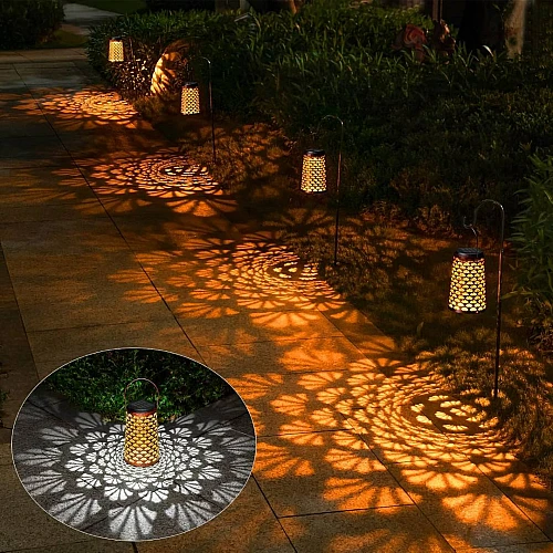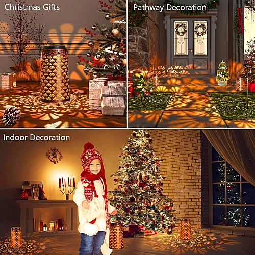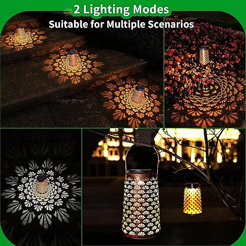 • 💡 إضاءة دافئة وساحرة: يوفر ضوء LED دافئاً يخترق الزخارف الدقيقة، ليرسم أنماطاً ضوئية خلابة على الأرضيات والجدران.
