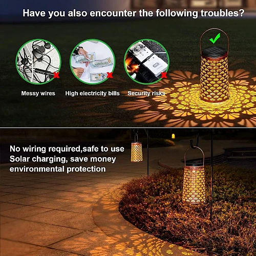 إضاءة زينة للحدائق بالطاقة الشمسية : فانوس نحاسي ساحر وموفر