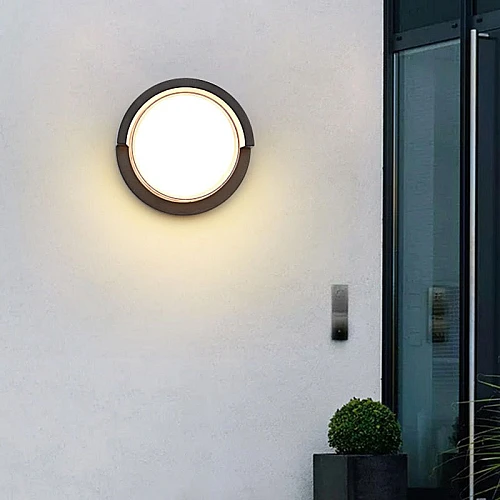 إنارة جدارية خارجية كشاف بوابة بتصميم دائرة بإضاءة هادئة ومريحه لون الإنارة اصفر 12 واط