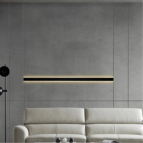 أبليك حائط بتصميم مودرن أنيق باللون الأسود، يوفر إضاءة صفراء دافئة بدرجة حرارة 3000K تضيف لمسة فخامة وهدوء للمكان. طوله 150 سم يجعله قطعة إضاءة لافتة ومميزة، مثالية للمساحات الواسعة والديكورات العصرية.
