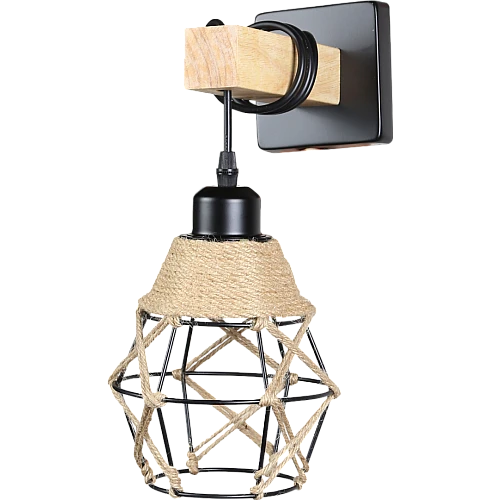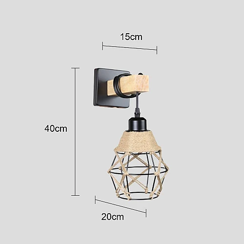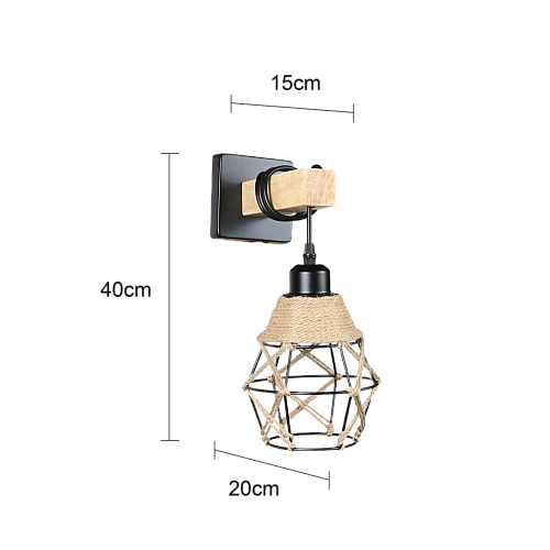 أبليك جداري مودرن يجمع بين الحديد الأسود، الخشب الطبيعي، وحبل القنب ليقدّم تصميمًا فريدًا يمزج الطابع الصناعي مع الدفء الريفي، مع قاعدة E27 تمنحك حرية اختيار اللمبة المناسبة لخلق الأجواء التي تناسب ذوقك.