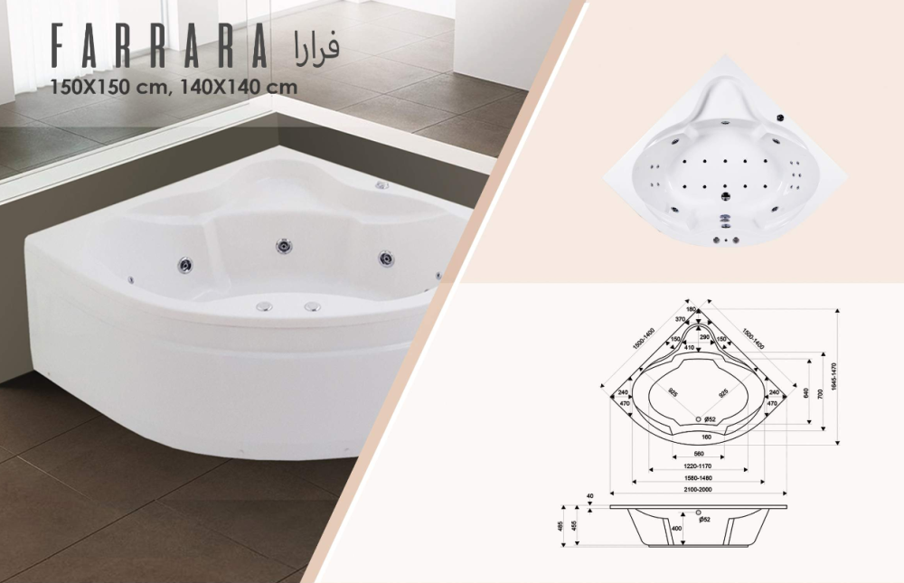 جاكوزي فرارا فل كامل مقاس 140*140 صناعه بحريني اجهزه اوربيه النمسا بضمان عسر سنوات على بنل خارجي وسنتين على جميع قطع