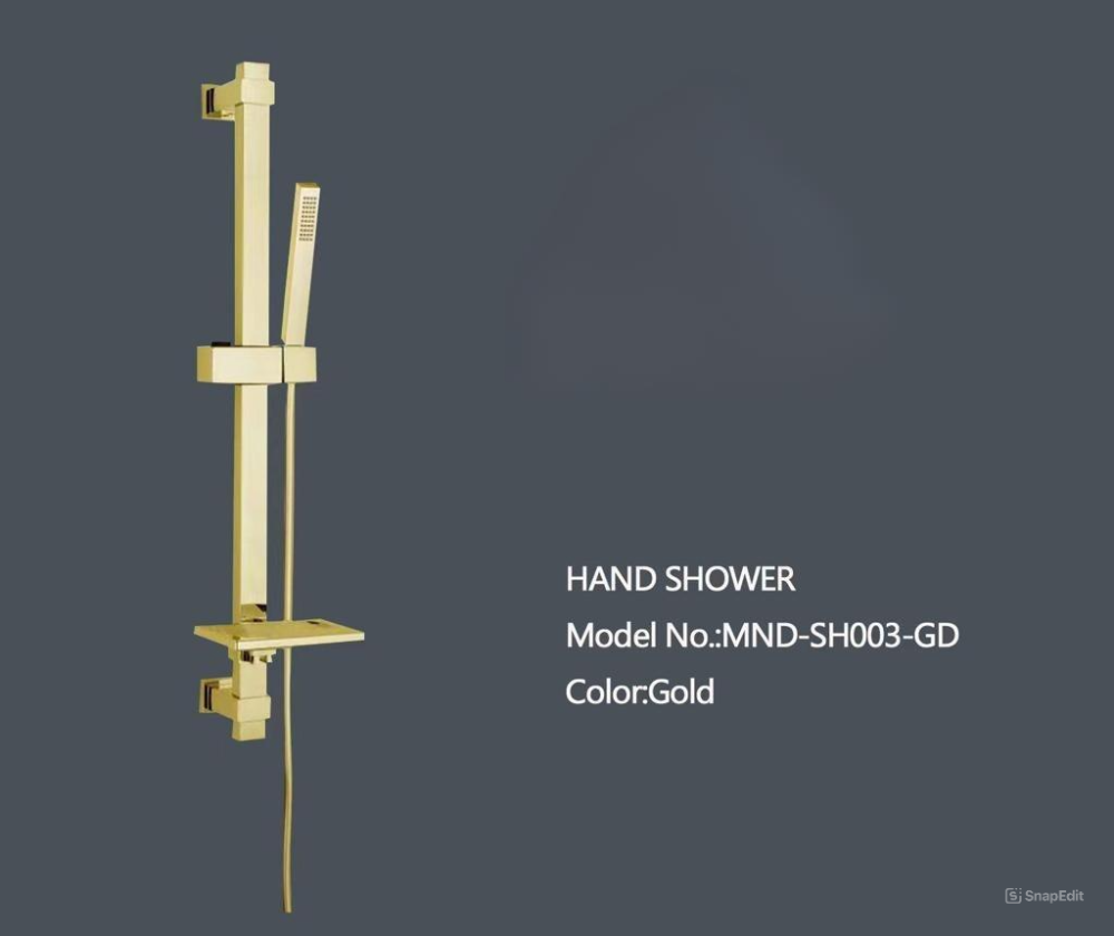 - التصميم: حامل دش مربع بلون ذهبي أنيق.