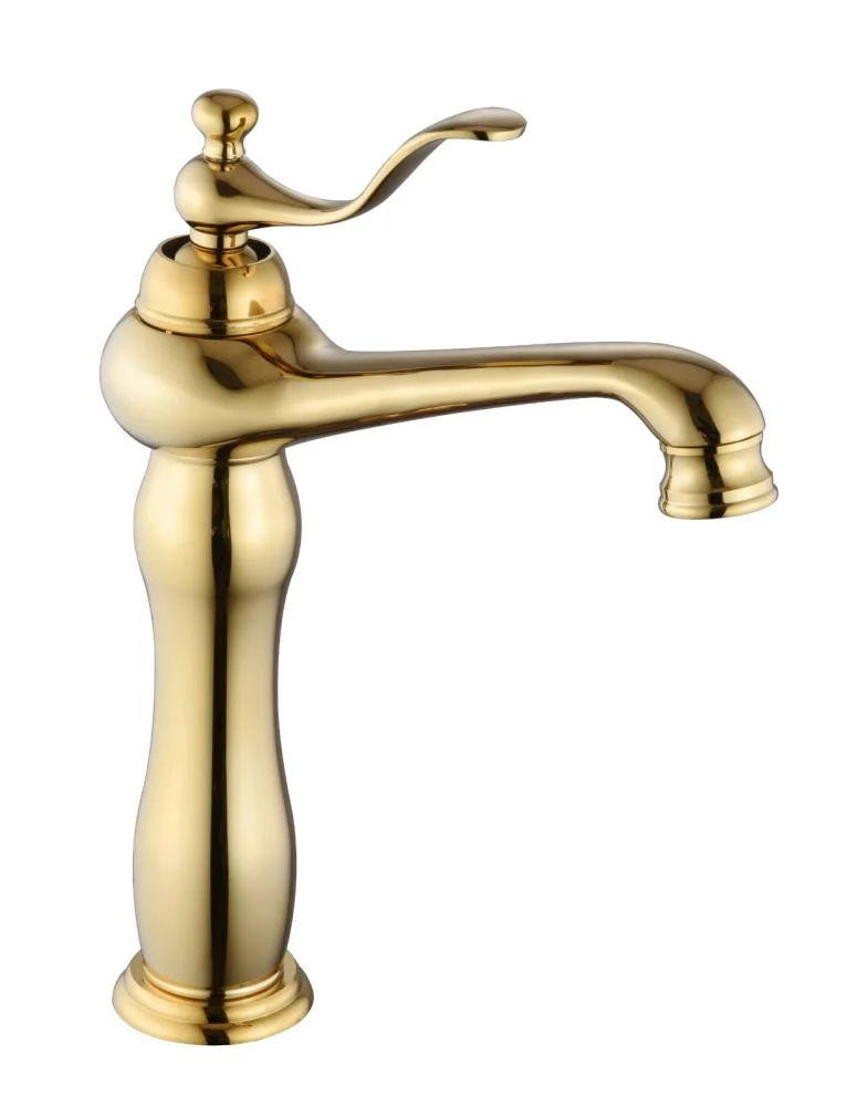 خلاط مغسلة عالي معتق أصفر مقاوم للصدأ