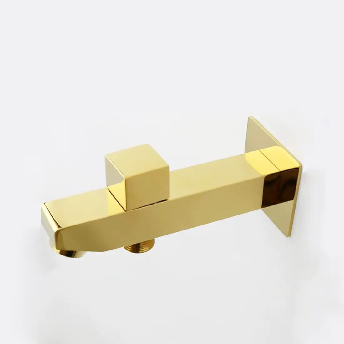 - صباب دش بتصميم مربع عصري بلون ذهبي فاخر، مزود بخطين مائيين للتحكم المثالي. يوفر لمسة من الأناقة والرفاهية، ويجمع بين الأداء العملي والتصميم الجذاب ليتناسب مع الحمامات المودرن.