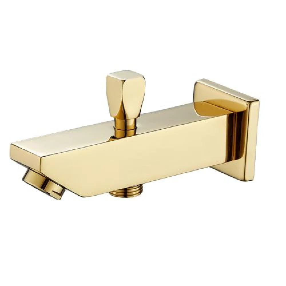 - صباب دش بتصميم مودرن أنيق باللون الذهبي، يتميز بشكل مربع مع خطين لتعزيز تدفق الماء. يأتي هذا الصباب لإضفاء لمسة من الفخامة والحداثة على حمامك.