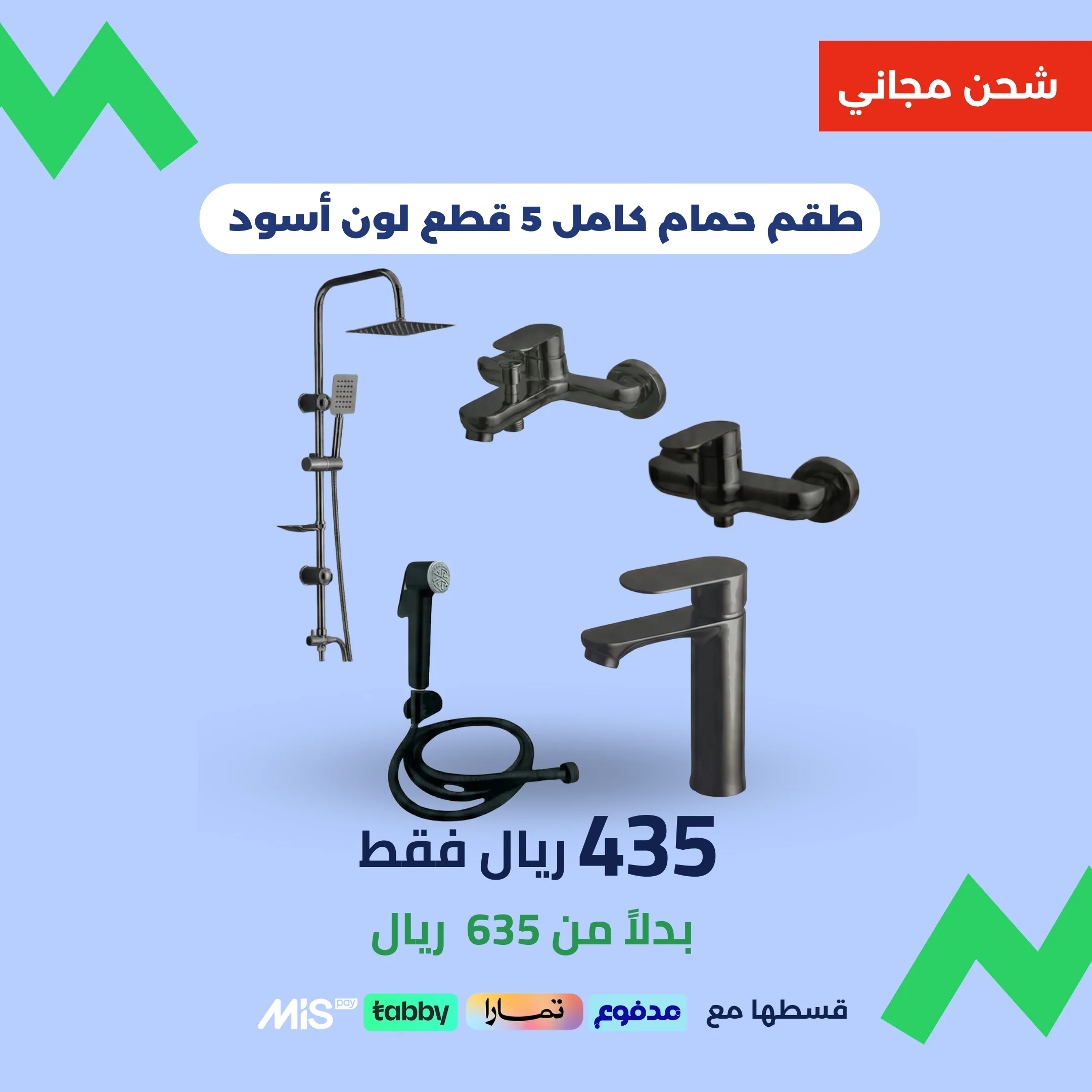 طقم متكامل يغطي احتياج الحمام بالكامل.