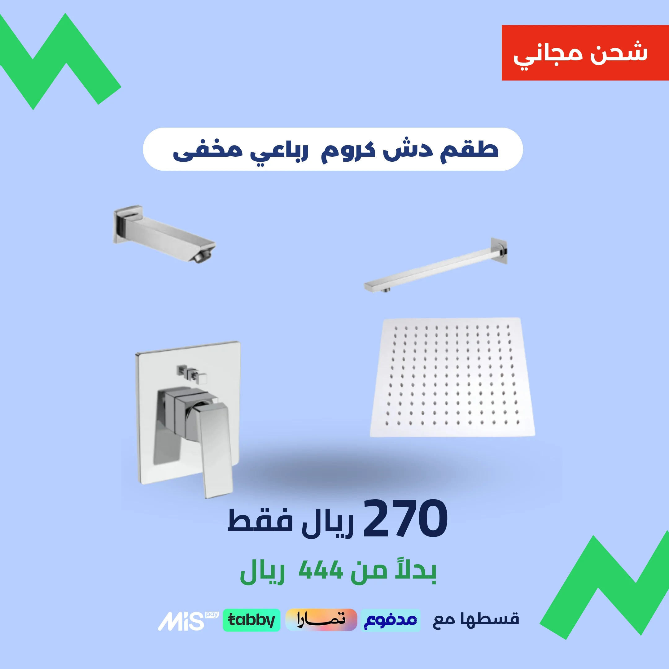 طقم دش مخفي رباعي بتشطيب كروم أنيق يناسب الحمامات العصرية.