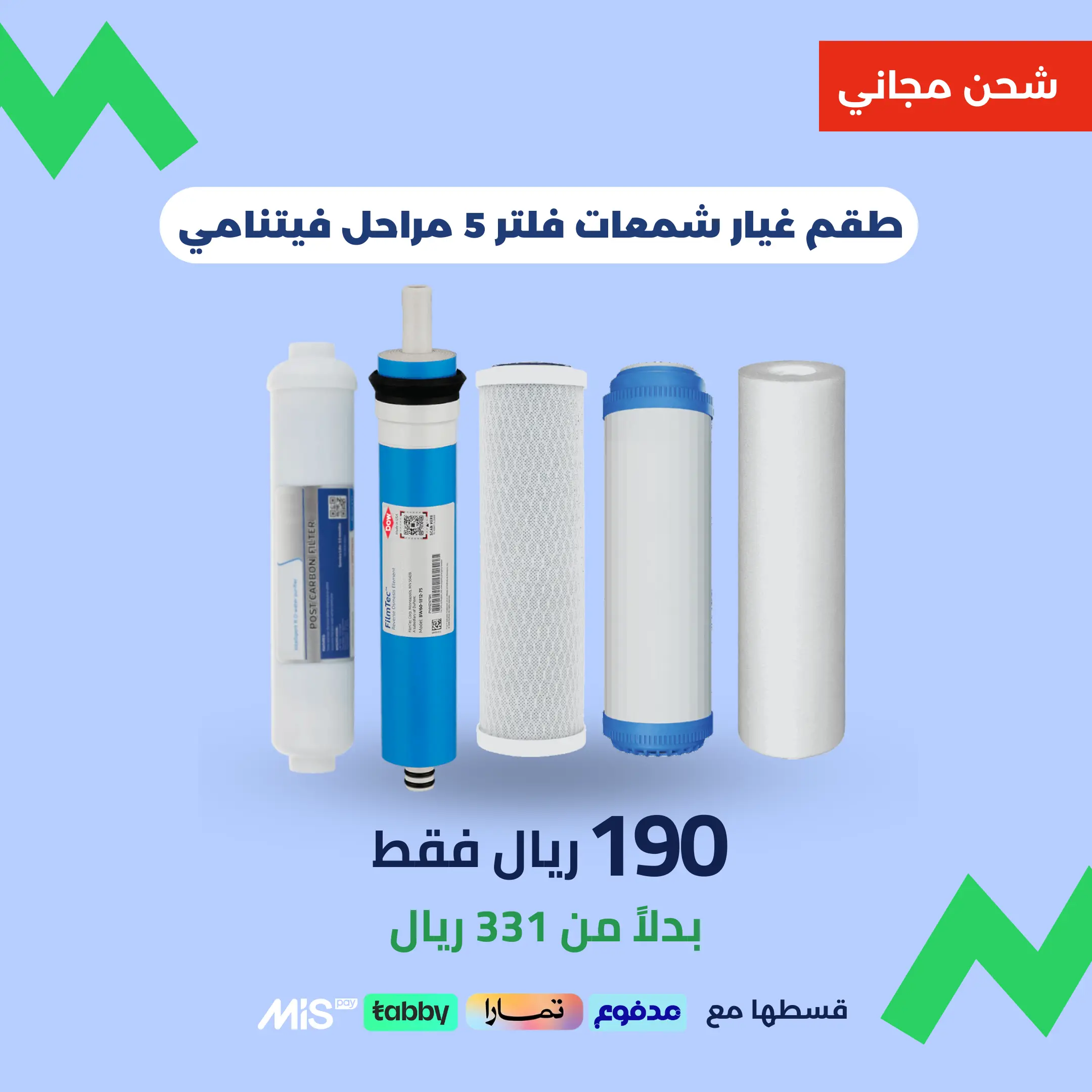 طقم غيار شمعات فلتر ماء 5 مراحل – صناعة فيتنامية