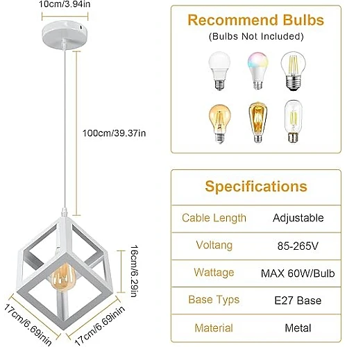 - نوع اللمبة: E27 (غير مشمولة مع المنتج، لتختار الإضاءة التي تناسب ذوقك )