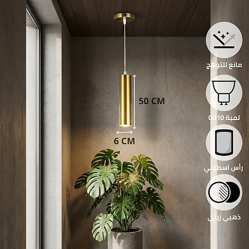 علاقي سلندر ذهبي زيتي مودرن 50 سم – لمبة GU10 – ارتفاع 2M