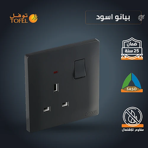 فيش ثلاثي مع مفتاح 13 امبير لون اسود بيانو