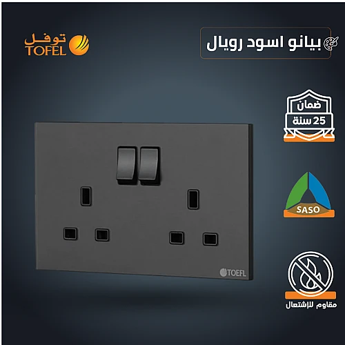 فيش ثلاثي مع 2 مفتاح مستطيل لون بيانو اسود رويال