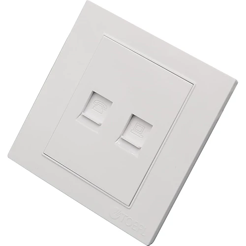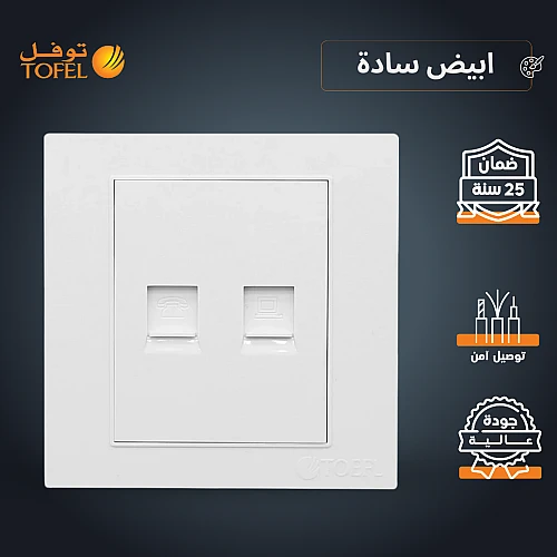 فيش منفذ كمبيوتر مع هاتف تلفون لون ابيض ساده توفل