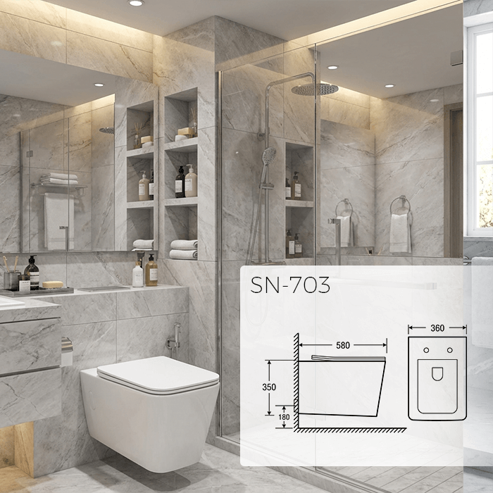 كرسي معلّق بتصميم عصري أنيق يمنح الحمام مظهرًا حديثًا ومرتبًا، مع توفير مساحة أكبر وسهولة في التنظيف. يتميز بتثبيت مخفي يضفي لمسة فخامة ويعزز الإحساس بالاتساع، ما يجعله خيارًا مثاليًا للحمّامات العصرية والفنادق والفلل الحديثة.