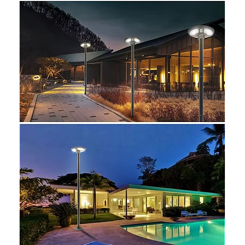 - أثناء الليل: عندما تغيب الشمس، يستخدم الكشاف الطاقة المخزنة لإضاءة المنطقة المحيطة تلقائيًا. يقوم مستشعر الميكروويف برفع مستوى الإضاءة عند اكتشاف حركة، ثم يخفت الضوء أو ينطفئ بعد فترة زمنية لضمان أقصى كفاءة في استهلاك الطاقة.
