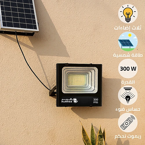 كشاف همر HUMMER الخارجي بالطاقة الشمسية 300 واط – 3 ألوان إنارة بريموت تحكم (IP65)