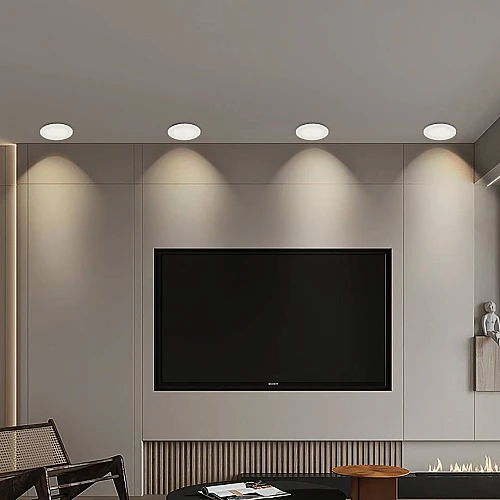 - تصميم فائق النحافة: بتصميم دائري أنيق وإطار أبيض معتم، يندمج الكشاف بسلاسة مع أي ديكور سقف جبسي أو مستعار دون بروز مزعج.
