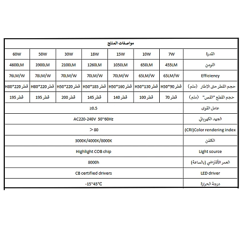| القدرة | 7 واط |