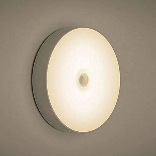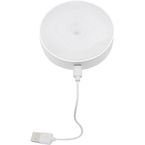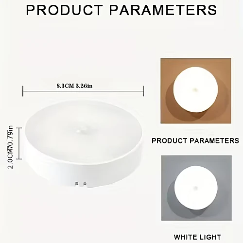 لمبة بالشحن كشاف دواليب دائري تعمل بالحساس لخزانة ليلة لغرفة النوم و خزانة المنزل الإضاءة لون إنارة ابيض و لون الاضاءة اصفر القدرة 3 واط مقاس قطر 8.5 سم