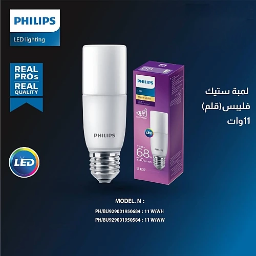 لمبة ستيك ( كبسولة ) 11 واط لون الانارة اصفر قاعدة E27 فيليبس