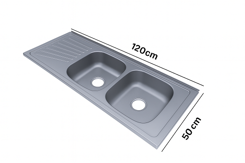 • التصميم: مستطيل بحوضين مربعين مع مساحة جانبية مسطّحة لتجفيف الأطباق