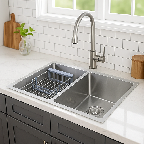 أضف لمسة من الأناقة والعملية إلى مطبخك مع حوض المطبخ المزوّد بحوضين، المصنوع من ستانلس ستيل عالي الجودة المقاوم للصدأ. يتميز بتصميم مستطيل عصري يسهّل تنظيم المهام اليومية، ويوفّر مساحة عمل واسعة ومريحة لعمليات الغسيل والتنظيف بكفاءة عالية.