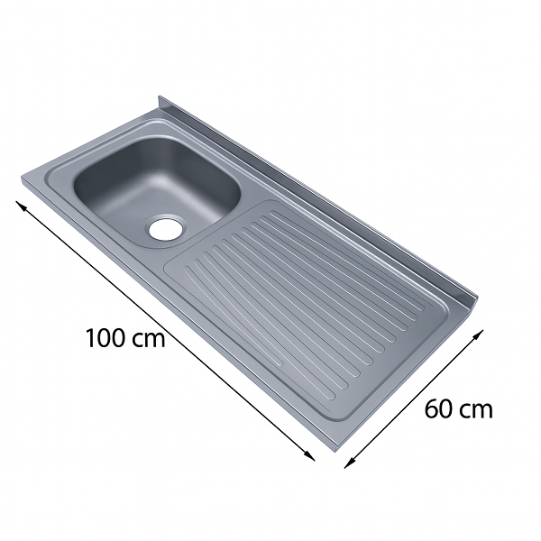 التصميم: مستطيل بحوض واحد مع مساحة جانبية مسطّحة لتجفيف الأطباق