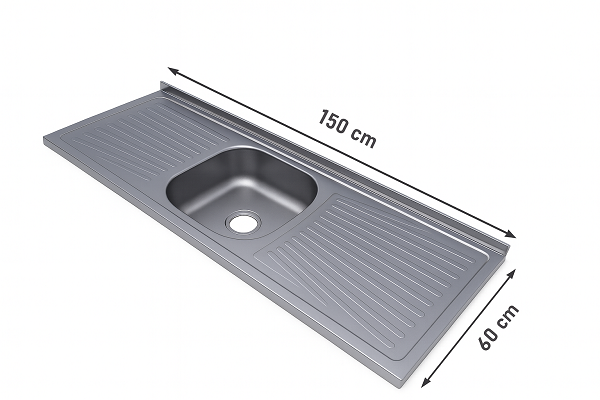 التصميم: مستطيل بحوض واحد مع مساحة جانبية مسطّحة لتجفيف الأطباق
