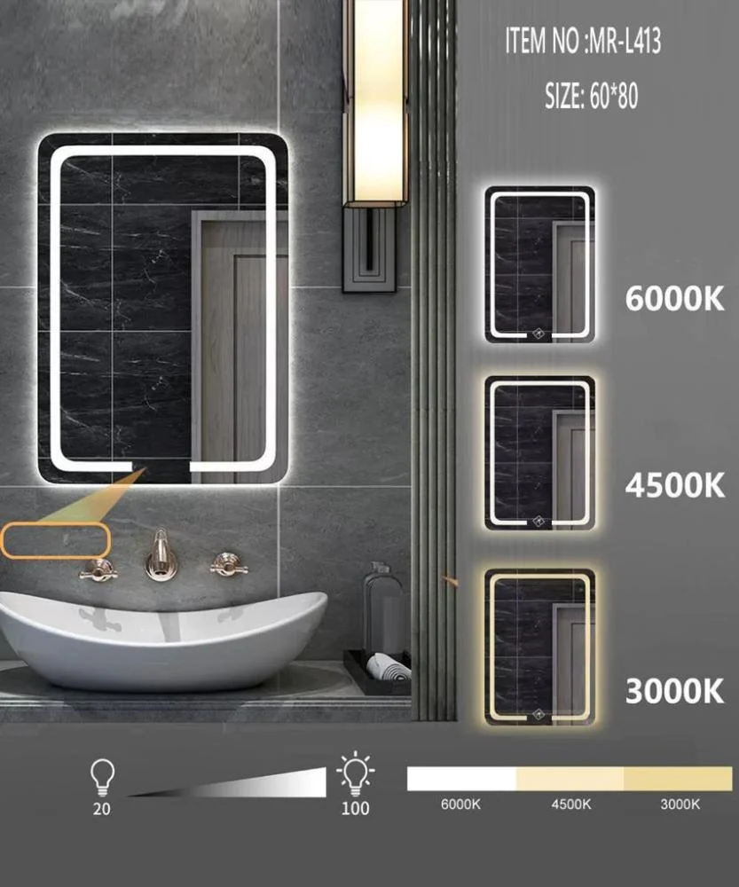 مرايا ليد ٣ لون مقاس ٦٠*٨٠