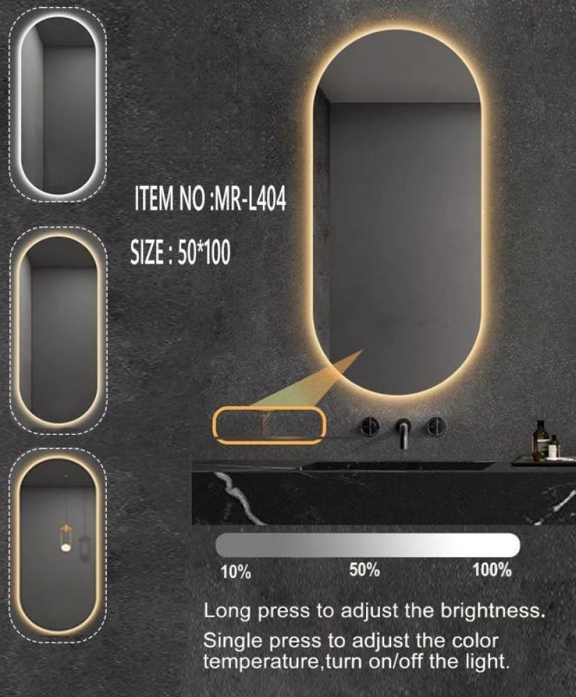 تُزود المرآة بأزرار تحكم باللمس، مما يسهل التبديل بين أوضاع الإضاءة وضبط شدة السطوع لتلبية تفضيلاتك الشخصية. بفضل تقنية LED الموفرة للطاقة، فإنها ليست فقط خيارًا أنيقًا، بل أيضًا اقتصاديًا وصديقًا للبيئة.