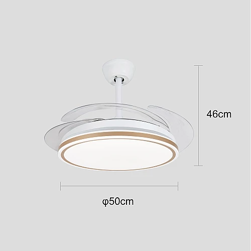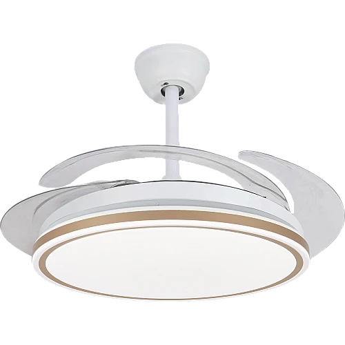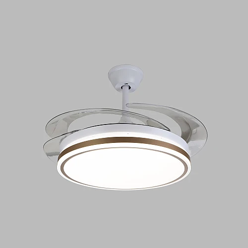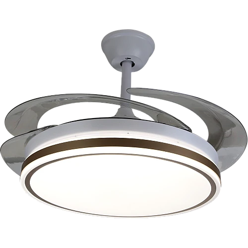 - تصميم “الشفرات المخفية” الثوري: عندما لا تكون المروحة قيد التشغيل، تختفي الشفرات الشفافة داخل الهيكل المعدني الأنيق، مما يحافظ على جمالية الثريا العصرية ويمنحك مظهراً نظيفاً وخالياً من الفوضى البصرية.