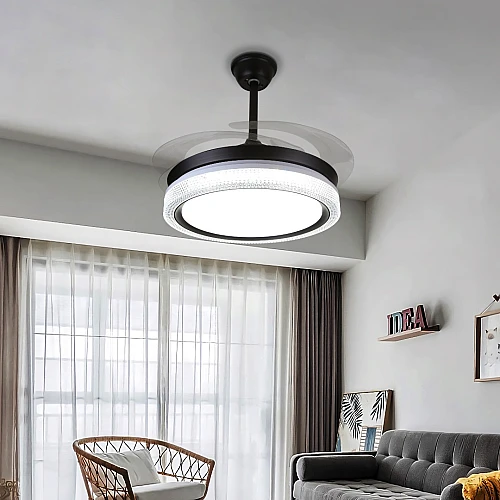 ريش متقنة: الريش تختفي وتظهر بشكل سلس عند تشغيل وإيقاف المروحة، مما يضفي لمسة أنيقة على التصميم.