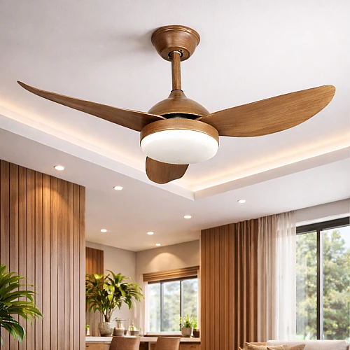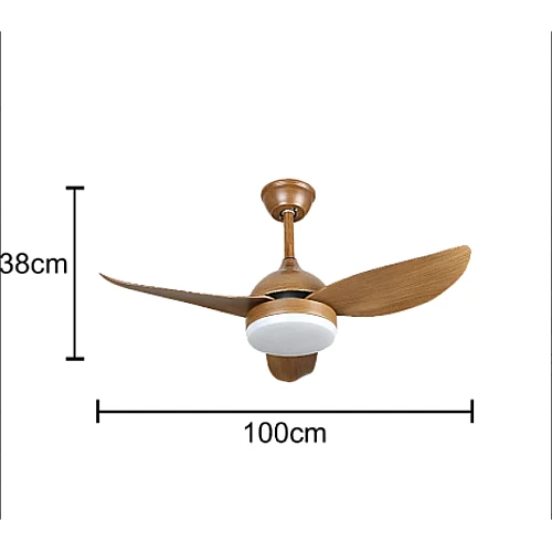 مروحة سقف مودرن خشبي بإضاءة 3 اللوان متعددة LED وريموت كنترول