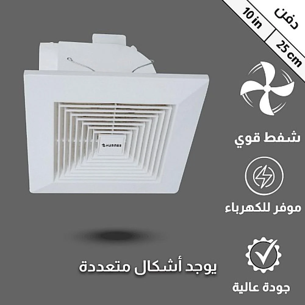 ✔ التصميم: مروحة شفط سقفية مربعة مع شبك حماية لزيادة الأمان والكفاءة.