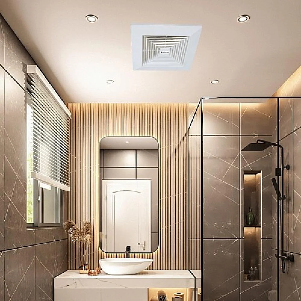 ✔ التصميم: مروحة شفط سقفية مربعة مع شبك حماية، توفر أداءً فعالًا في التهوية.