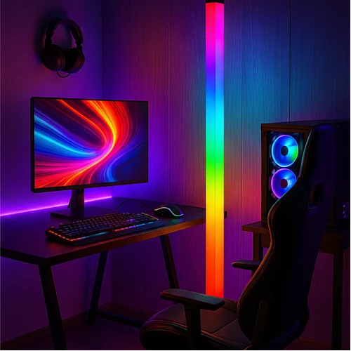 مصباح أرضي LED قابل للتخصيص بكل لون حسب رغبتك، مع إضاءة ديناميكية تناسب الألعاب، الحفلات، أو الاسترخاء.