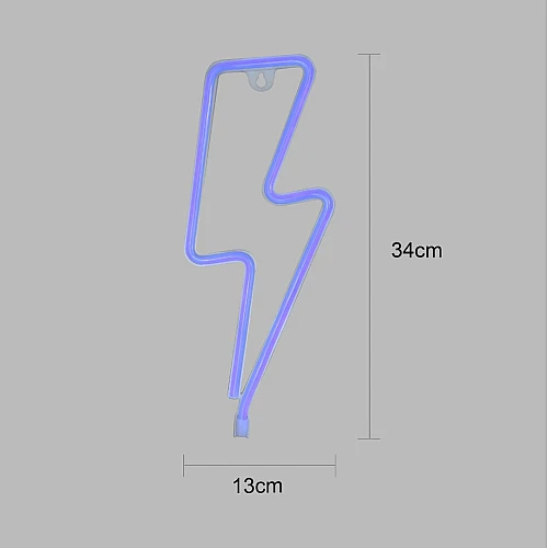 مصباح اضاءة ليد نيون على شكل صاعقة مضيئة للديكور، ازرق تعمل بالبطارية و USB
