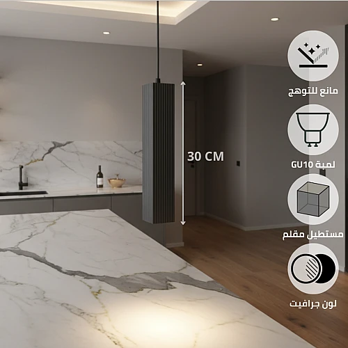 مصباح علاقي سلندر مكعب مستطيل مقلم مودرن جرافيت (مقاس 30 سم) – قاعدة GU10