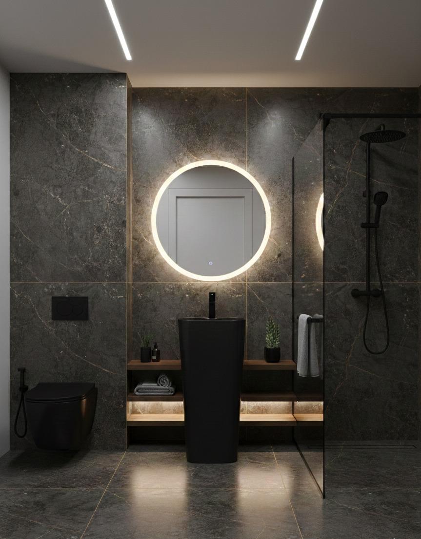 • تصميم أسطواني عصري وفريد يضفي لمسة جمالية مميزة للحمام