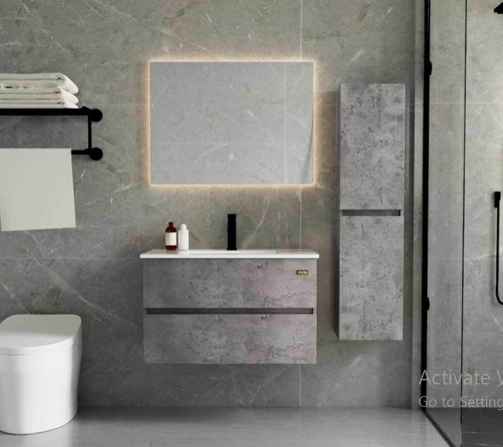 مغسلة ديكور مودرن لون رمادي مع صيدلية جانبية ومرايا ليد (متعدده مقاسات)