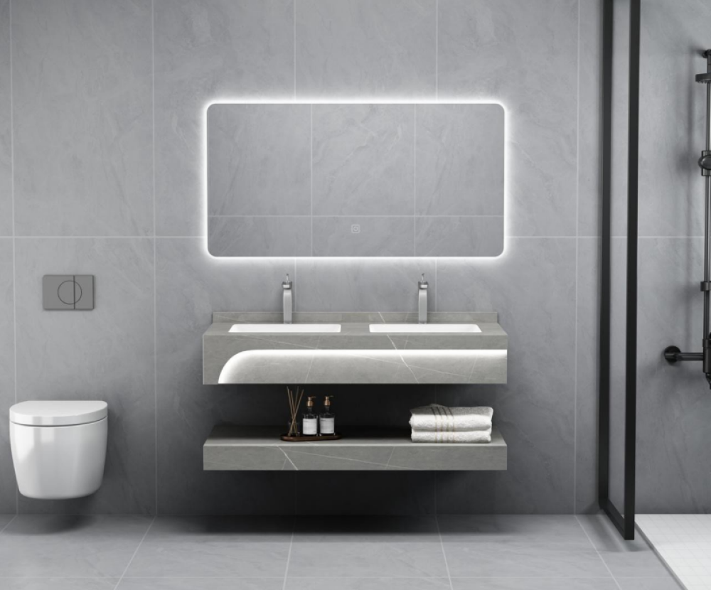 مغسلة بتصميم مزدوج عصري تجمع بين قوة الرخام الصناعي البورسلان وفخامة مرايا الليزر الحديثة، لتمنح حمّامك مظهرًا أنيقًا ووظيفة عملية مثالية للاستخدام اليومي. مقاس 120 سم يوفر مساحة مريحة لشخصين مع الحفاظ على تصميم متوازن يناسب الحمّامات المتوسطة.