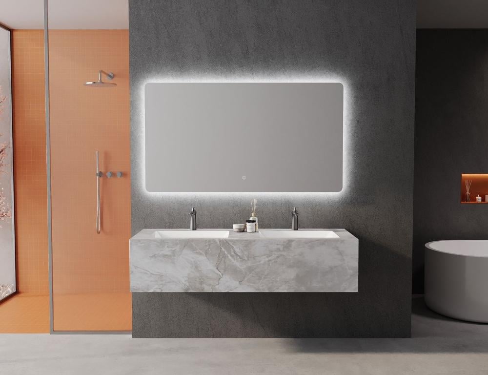 مغسلة بتصميم فاخر مزدوج تجمع بين قوة الرخام الصناعي البورسلان وفخامة مرايا الليزر الحديثة، لتمنح حمّامك تجربة استخدام عملية ومظهرًا راقيًا في آنٍ واحد. المقاس الكبير 150 سم يوفر مساحة واسعة لشخصين، مما يجعلها اختيارًا مثاليًا للحمّامات الواسعة والفلل الراقية.