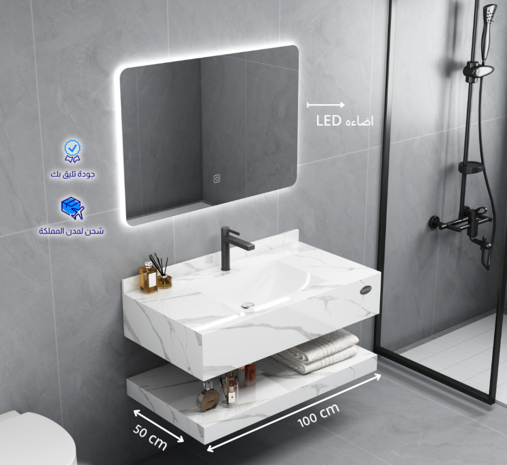كن أول من يقيم “مغسلة رخام صناعي ليزر ابيض عرق رمادي مع مرايا ليد – مقاسات متعددة”