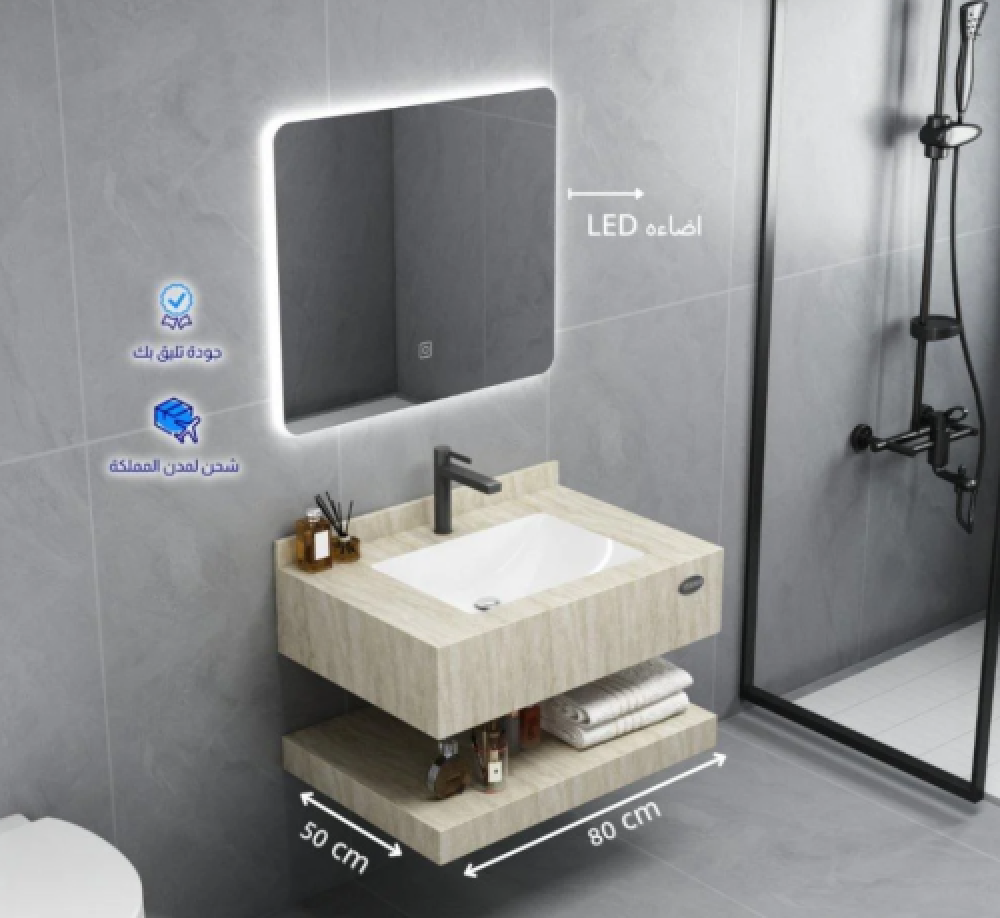 كن أول من يقيم “مغسلة رخام صناعي ليزر بيج فاتح مع مرايا ليد – مقاسات متعددة”