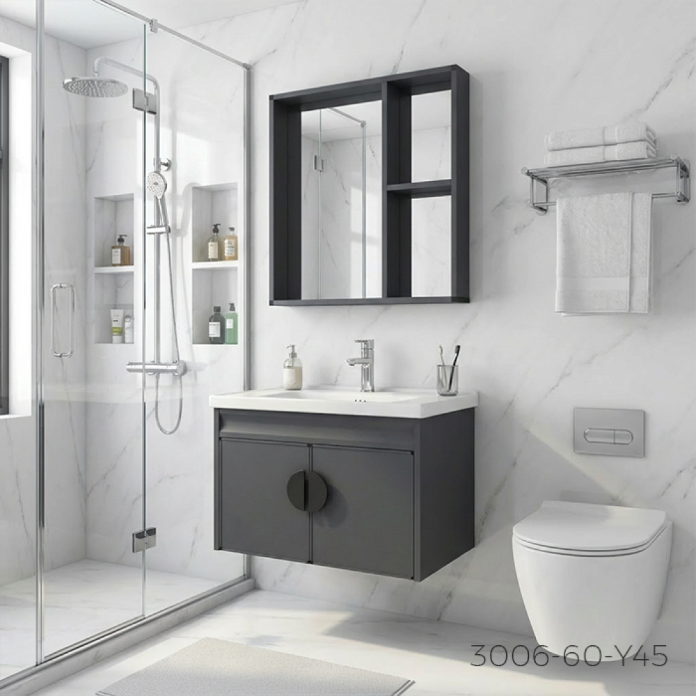 تصميم عصري فاخر: اللون يمنح الحمام لمسة من الفخامة والأناقة، مع مقاس يناسب المساحات الصغيرة والمتوسطة.