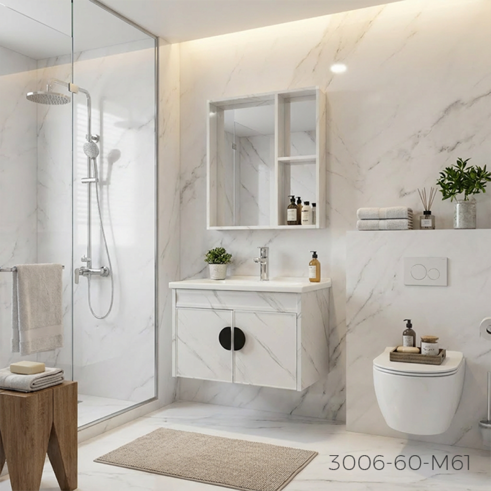 تصميم عصري فاخر: اللون يمنح الحمام لمسة من الفخامة والأناقة، مع مقاس يناسب المساحات الصغيرة والمتوسطة.