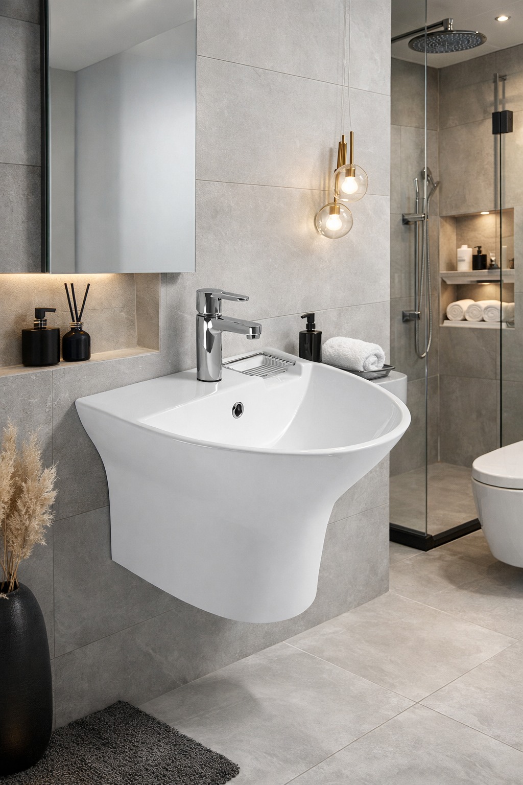 مغسلة معلّقة بتصميم عصري فاخر تجمع بين الأناقة والعملية، صُممت لتناسب الحمّامات الواسعة وتمنحها مظهرًا راقيًا ومنظّمًا. تتميز بمساحة استخدام كبيرة توفّر راحة أعلى، مع تصميم معلّق يساعد على سهولة التنظيف ويحافظ على نظافة الأرضية. كما يضفي شكلها الانسيابي إحساسًا بالاتساع ويمنح الحمام لمسة فندقية أنيقة، مع خامات عالية الجودة تضمن المتانة وطول العمر. خيار مثالي لمن يبحث عن الفخامة، الراحة، والكفاءة في آن واحد.